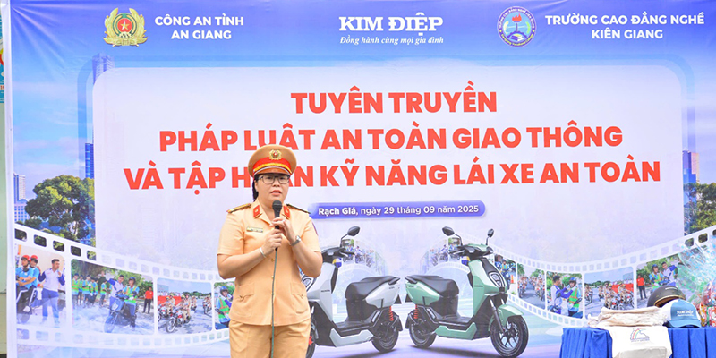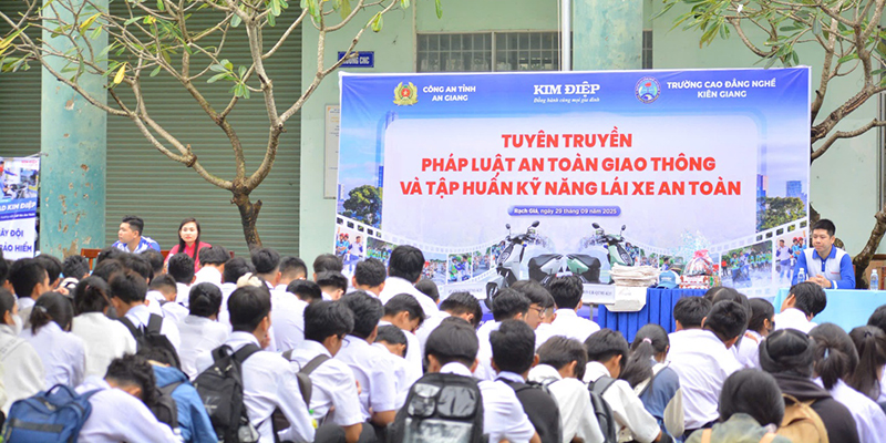 Sáng ngày 29 tháng 9 năm 2025, tại Trường Cao đẳng Nghề Kiên Giang, Đoàn Trường phối hợp cùng Công an tỉnh An Giang và Công ty Honda Kim Điệp tổ chức Chương trình “Tuyên truyền pháp luật An toàn giao thông và tập huấn kỹ năng lái xe an toàn” cho học sinh, sinh viên toàn trường.
