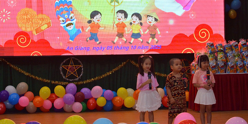 Mở đầu chương trình là những tiết mục văn nghệ sôi động, vui nhộn do các em thiếu nhi biểu diễn, mang lại không khí rộn ràng, đúng tinh thần của ngày hội Trăng Rằm. Tiếp đó, các em được tham gia nhiều trò chơi dân gian, đố vui có thưởng, rước đèn ông sao, phá cỗ Trung thu, tạo nên không gian gắn kết yêu thương giữa thầy cô, phụ huynh và các em nhỏ.