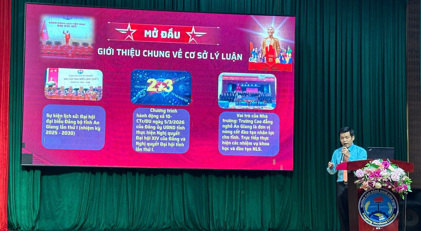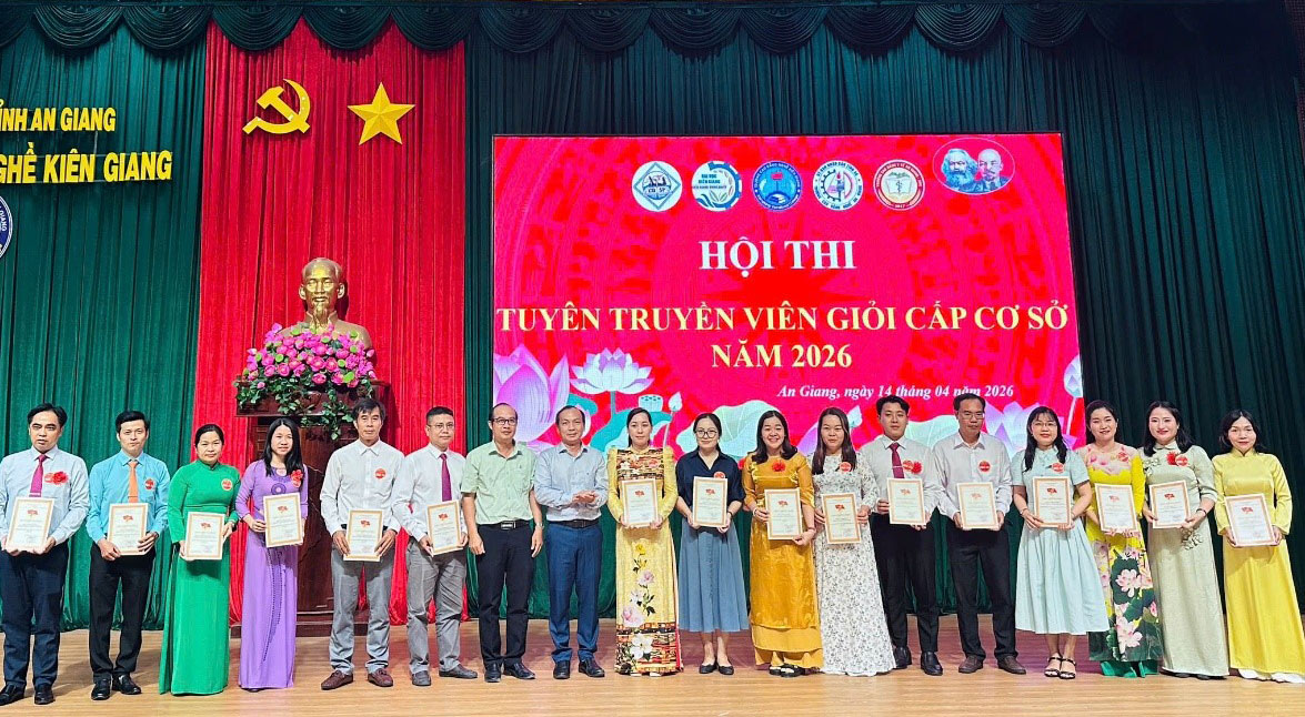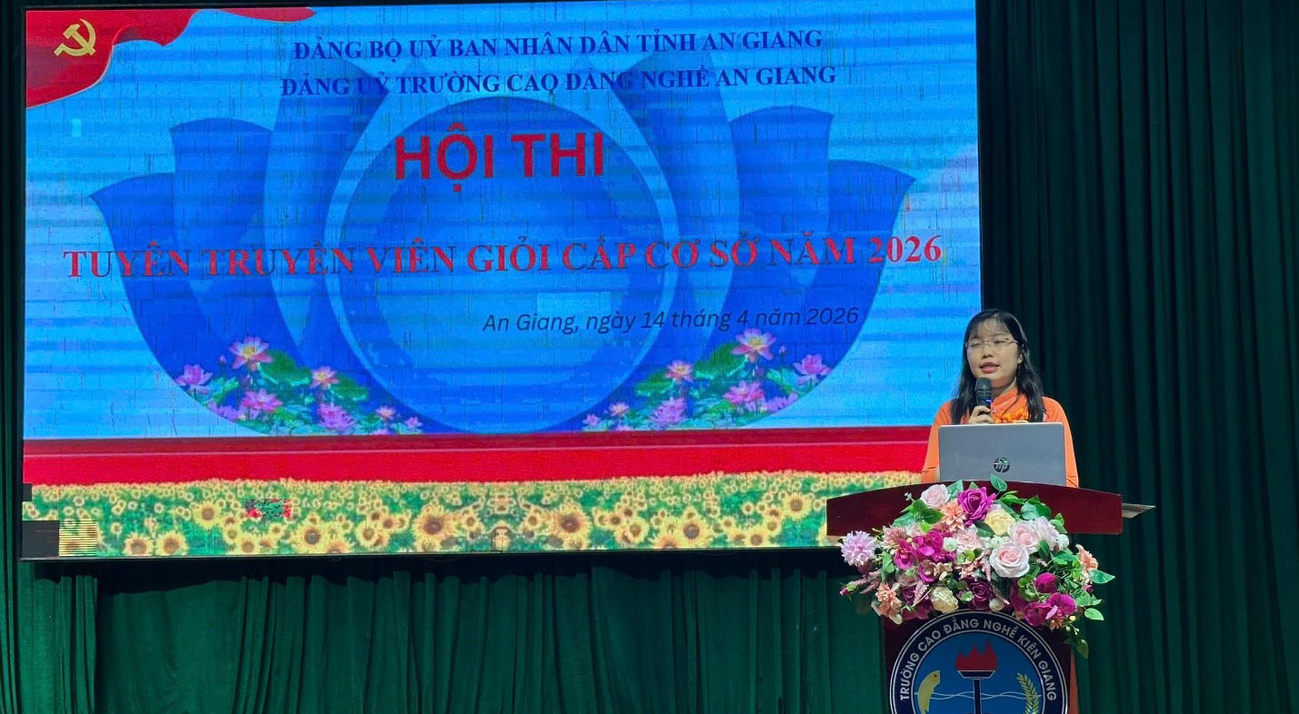 Nhằm nâng cao chất lượng đội ngũ làm công tác tuyên truyền ở cơ sở, đồng thời tạo môi trường giao lưu, học hỏi, rèn luyện kỹ năng cho cán bộ, đảng viên, ngày 14/4/2026, tại Trường Cao đẳng Nghề Kiên Giang, Đảng ủy nhà trường đã chủ trì, phối hợp với Đảng ủy các đơn vị: Trường Đại học Kiên Giang, Trường Cao đẳng Sư phạm Kiên Giang, Trường Cao đẳng Nghề An Giang và Trường Cao đẳng Y tế An Giang tổ chức thành công Hội thi Tuyên truyền viên giỏi cấp cơ sở năm 2026.