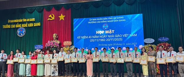 Sáng ngày 20/11/2025, Trường Cao đẳng Nghề Kiên Giang tổ chức họp mặt kỷ niệm 43 năm Ngày Nhà giáo Việt Nam (20/11/1982 - 20/11/2025) tại Hội trường lớn trong không khí trang trọng, ấm áp, nghĩa tình.