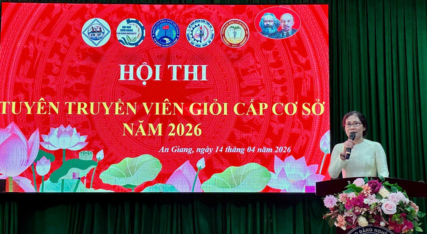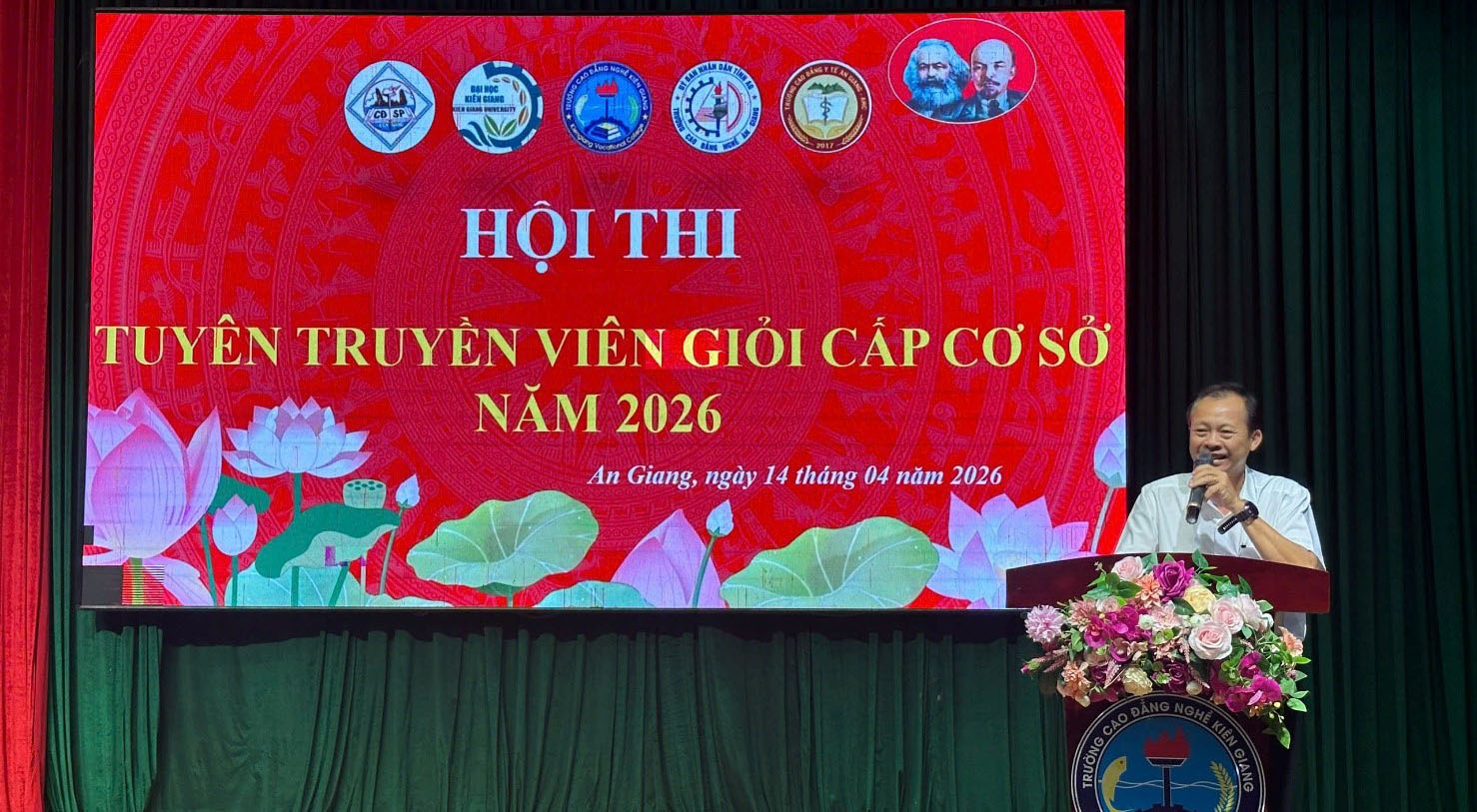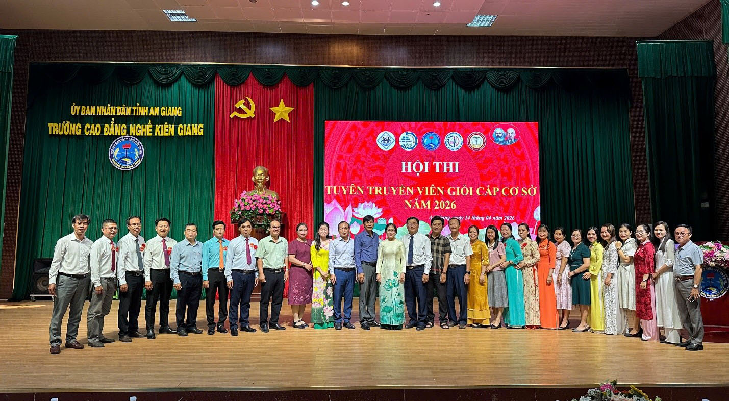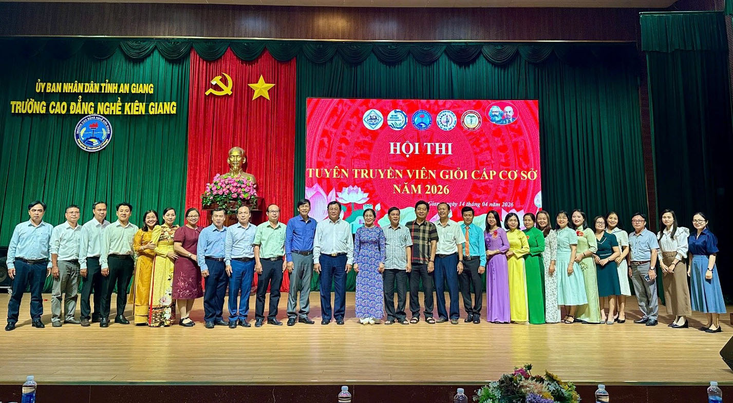 Nhằm nâng cao chất lượng đội ngũ làm công tác tuyên truyền ở cơ sở, đồng thời tạo môi trường giao lưu, học hỏi, rèn luyện kỹ năng cho cán bộ, đảng viên, ngày 14/4/2026, tại Trường Cao đẳng Nghề Kiên Giang, Đảng ủy nhà trường đã chủ trì, phối hợp với Đảng ủy các đơn vị: Trường Đại học Kiên Giang, Trường Cao đẳng Sư phạm Kiên Giang, Trường Cao đẳng Nghề An Giang và Trường Cao đẳng Y tế An Giang tổ chức thành công Hội thi Tuyên truyền viên giỏi cấp cơ sở năm 2026.
