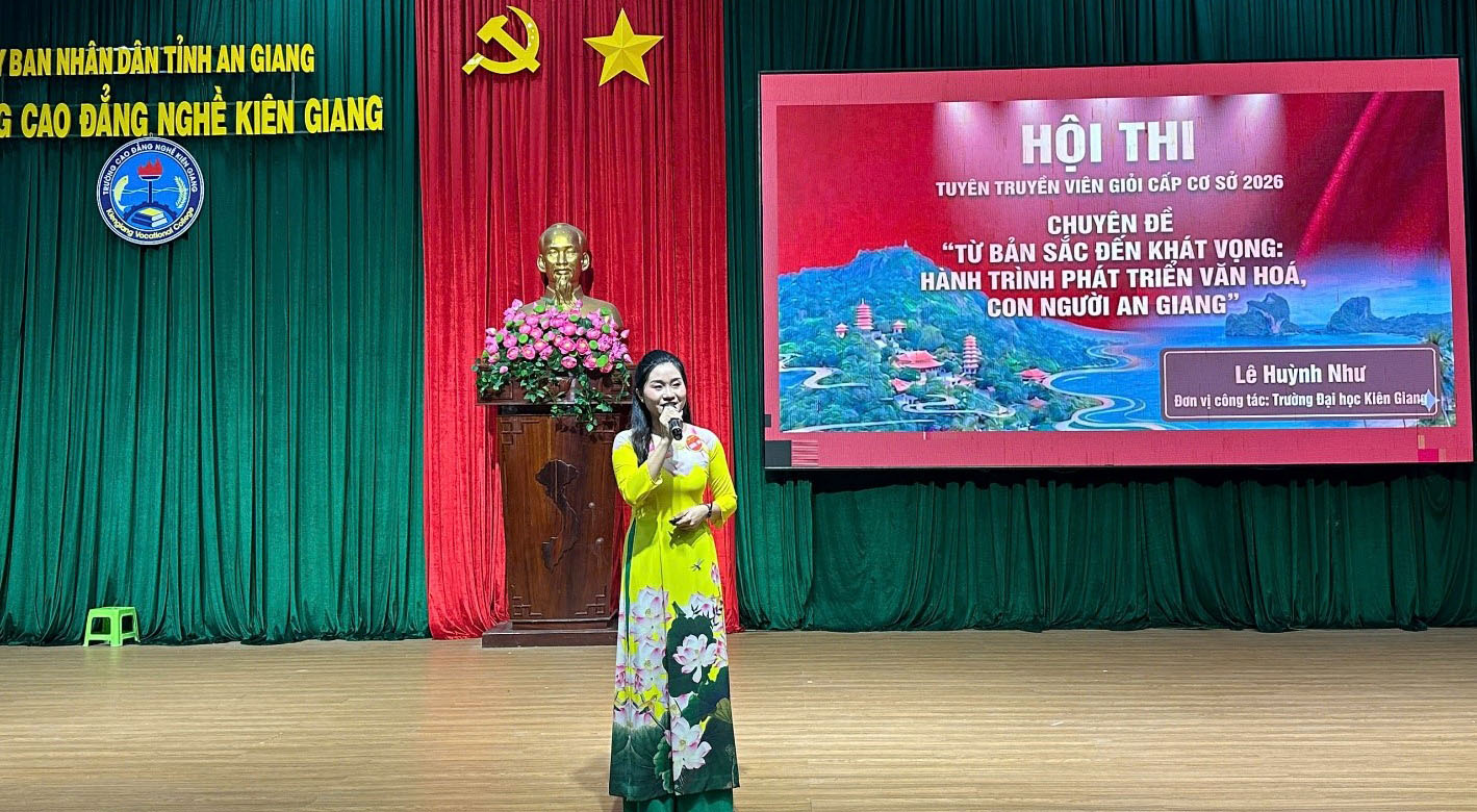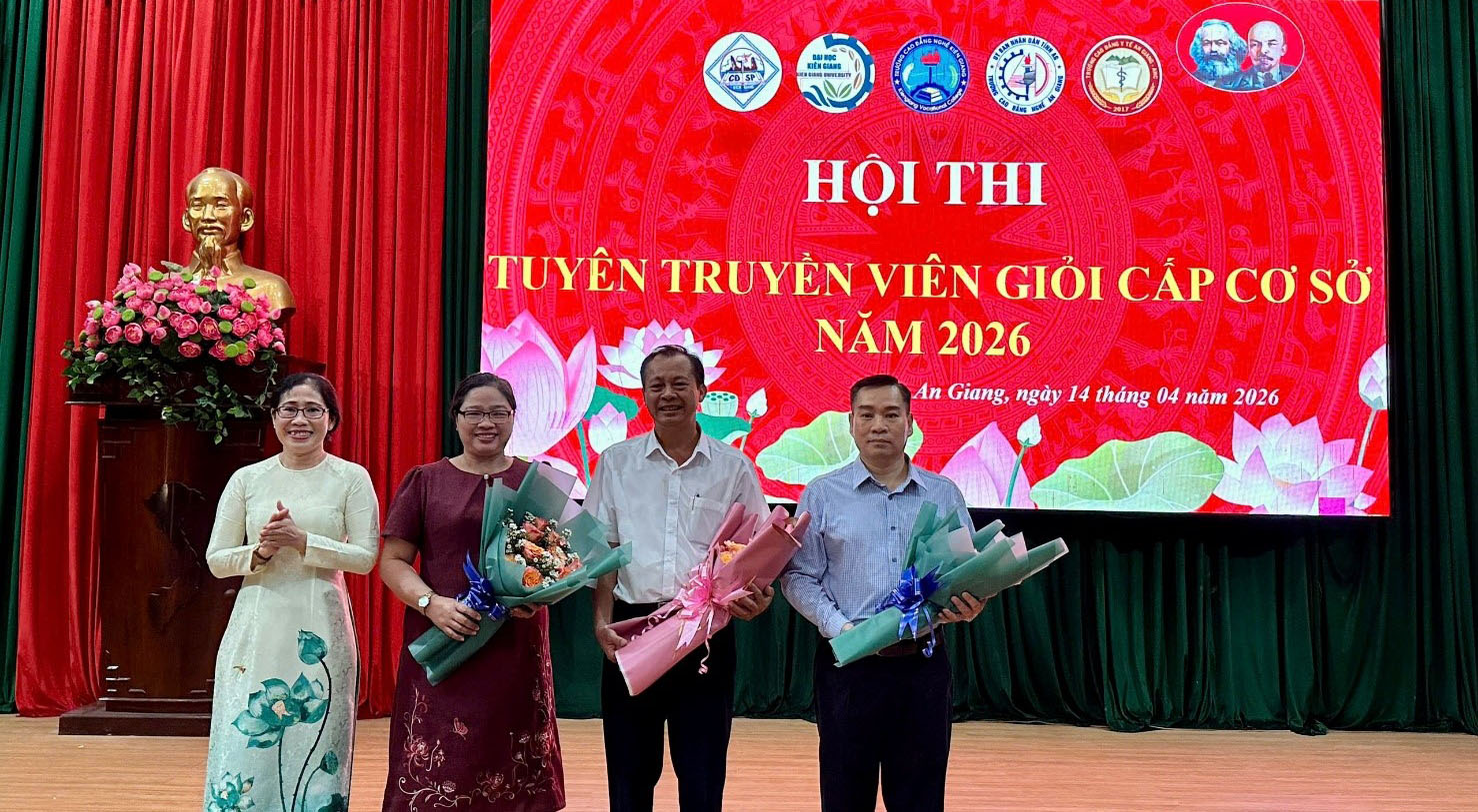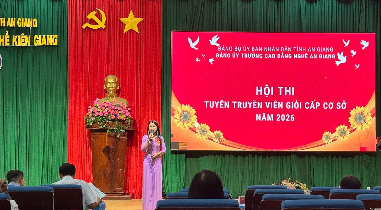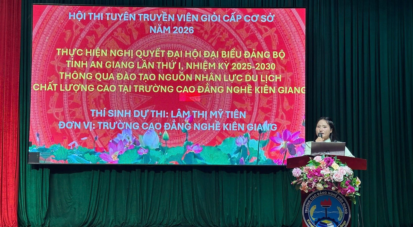 Nhằm nâng cao chất lượng đội ngũ làm công tác tuyên truyền ở cơ sở, đồng thời tạo môi trường giao lưu, học hỏi, rèn luyện kỹ năng cho cán bộ, đảng viên, ngày 14/4/2026, tại Trường Cao đẳng Nghề Kiên Giang, Đảng ủy nhà trường đã chủ trì, phối hợp với Đảng ủy các đơn vị: Trường Đại học Kiên Giang, Trường Cao đẳng Sư phạm Kiên Giang, Trường Cao đẳng Nghề An Giang và Trường Cao đẳng Y tế An Giang tổ chức thành công Hội thi Tuyên truyền viên giỏi cấp cơ sở năm 2026.